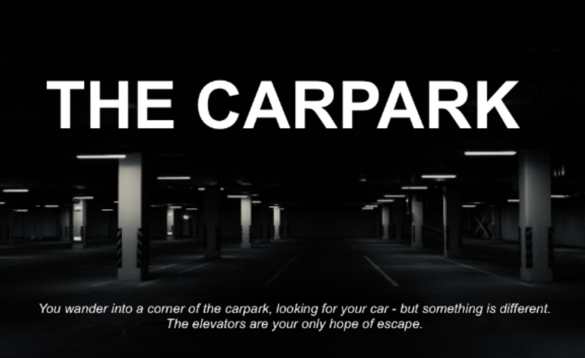 You wander into a corner of the Carpark - but something is different. The elevators are your only hope of escape.